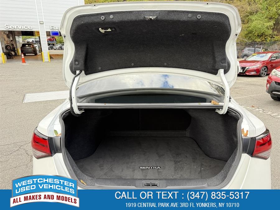 Clean CARFAX. CVT with Xtronic, Sport Cloth, 2-Tone Premium Paint, 4-Wheel Disc Brakes, ABS brakes, Air Conditioning, Auto High-beam Headlights, Automatic temperature control, Blind Spot Warning, Brake assist, Bumpers: body-color, Carpeted Floor Mats w/Trunk Mat, Delay-off headlights, Driver door bin, Driver vanity mirror, Dual front impact airbags, Dual front side impact airbags, Electronic Stability Control, Four wheel independent suspension, Front anti-roll bar, Front Bucket Seats, Front dual zone A/C, Front fog lights, Front reading lights, Fully automatic headlights, Heated door mirrors, Illuminated entry, Knee airbag, Low tire pressure warning, NissanConnect featuring Apple CarPlay and Android Auto, Occupant sensing airbag, Overhead airbag, Panic alarm, Passenger vanity mirror, Power door mirrors, Power steering, Power windows, Rear anti-roll bar, Rear Parking Sensors, Rear seat center armrest, Rear side impact airbag, Rear window defroster, Remote keyless entry, Security system, Speed control, Speed-sensing steering, Spoiler, Steering wheel mounted audio controls, Traction control, Turn signal indicator mirrors. SR 2020 Nissan Sentra Aspen White/Super Black FWD 28/37 City/Highway MPG Awards: